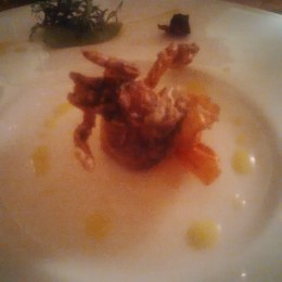 We were surprised by a soft crab amuse bouche of sorts as a treat. If you know me, you know I don’t do crab, I just don’t. When it comes to shell fish, I prefer lobster and shrimp.