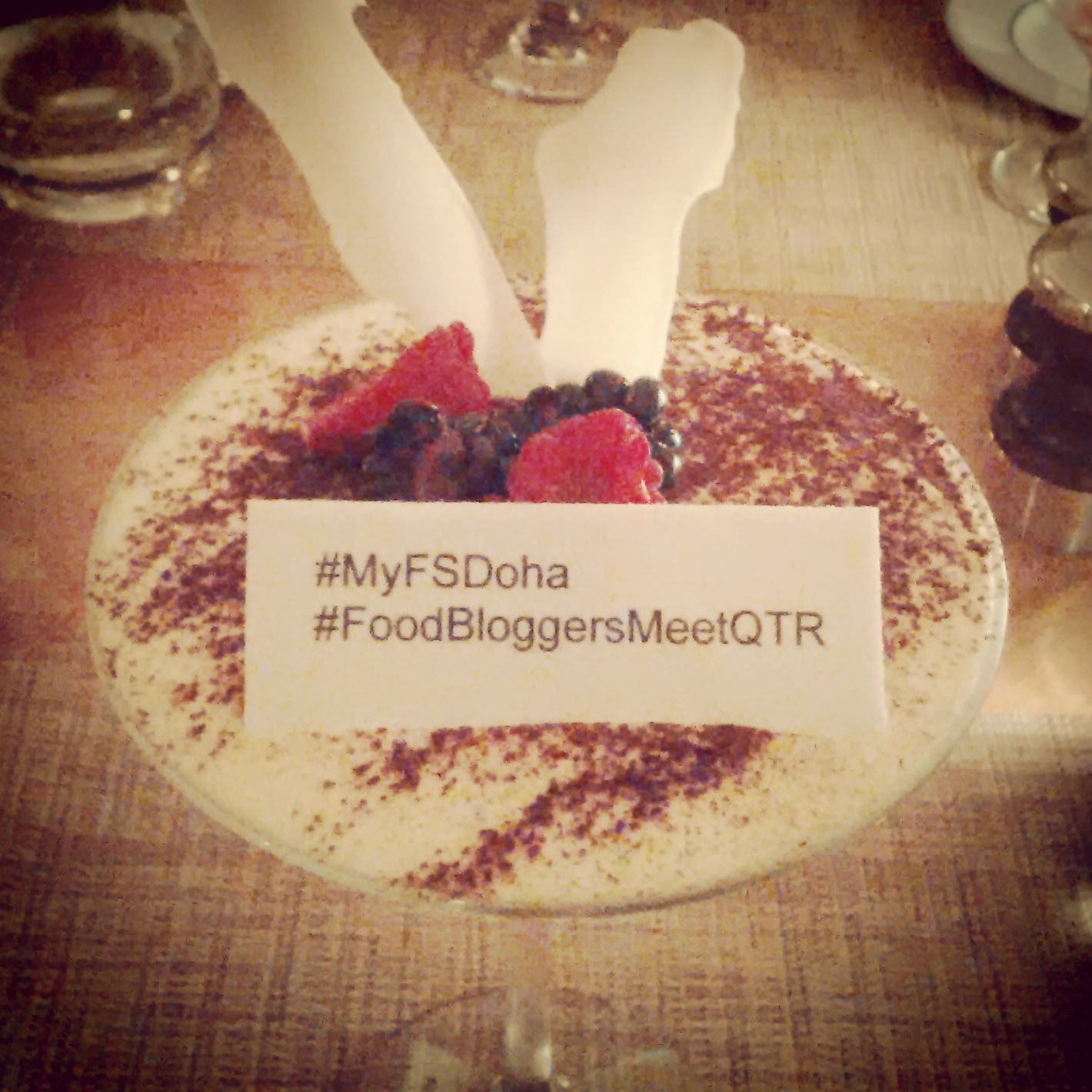 Plated in a large martini glass, topped with an eatable salute to Food Bloggers Qatar & the Four Seasons, this tiramisu was extremely light, fluffy and I’m assuming had a lovely hint of nutmeg.