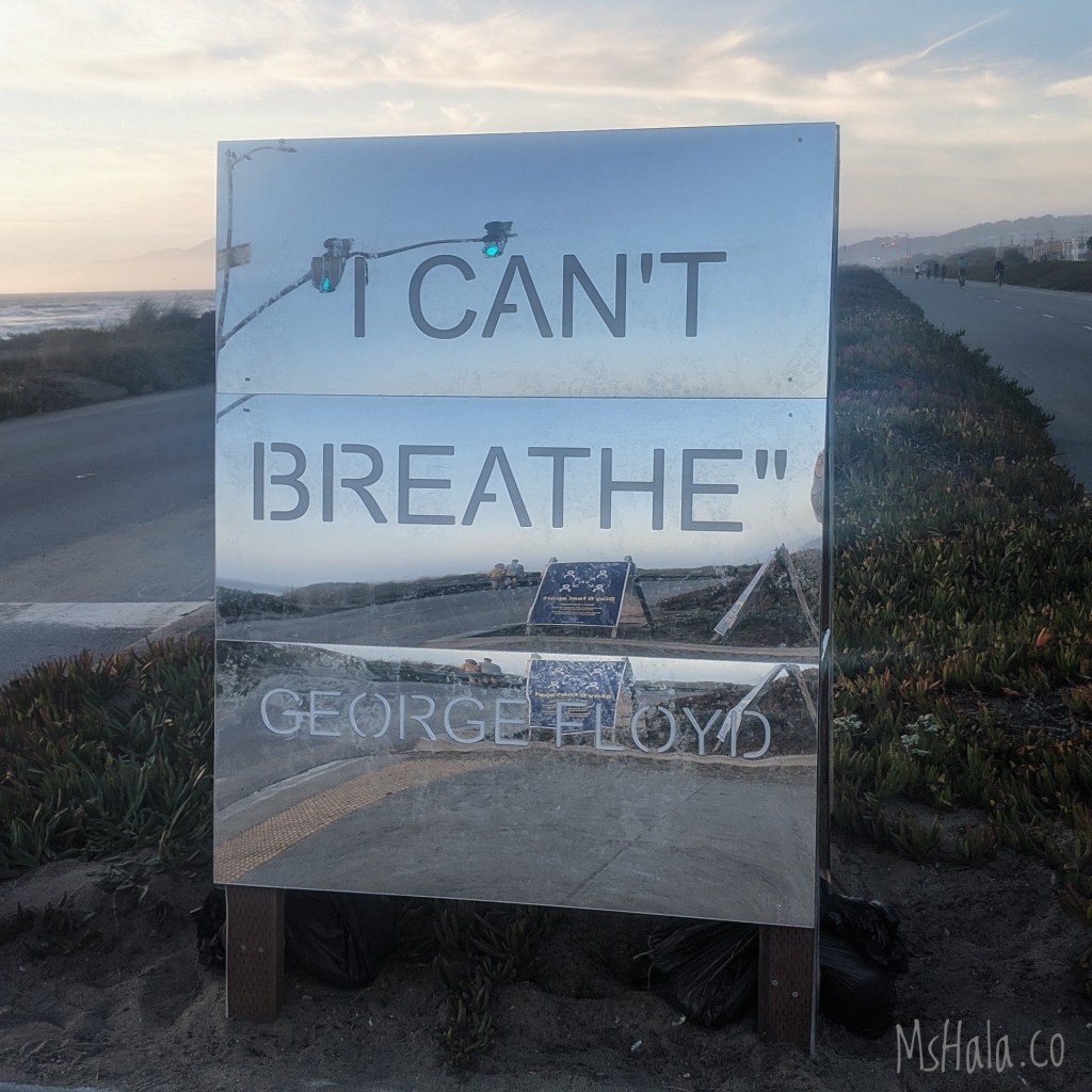 “I can’t breathe” – George Floyd Please tag or note the artist for credit. This piece is located on Upper Great Highway and Rivera Avenue in San Francisco, CA.